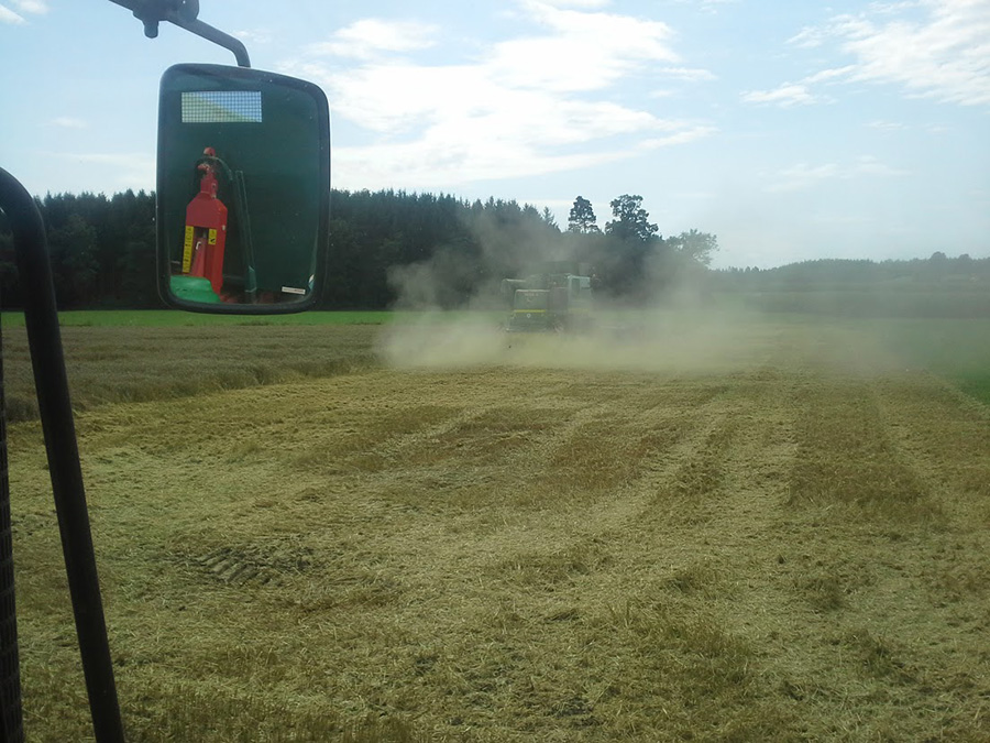 Beim Rapsdreschen