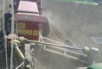 Beim Getreidedreschen